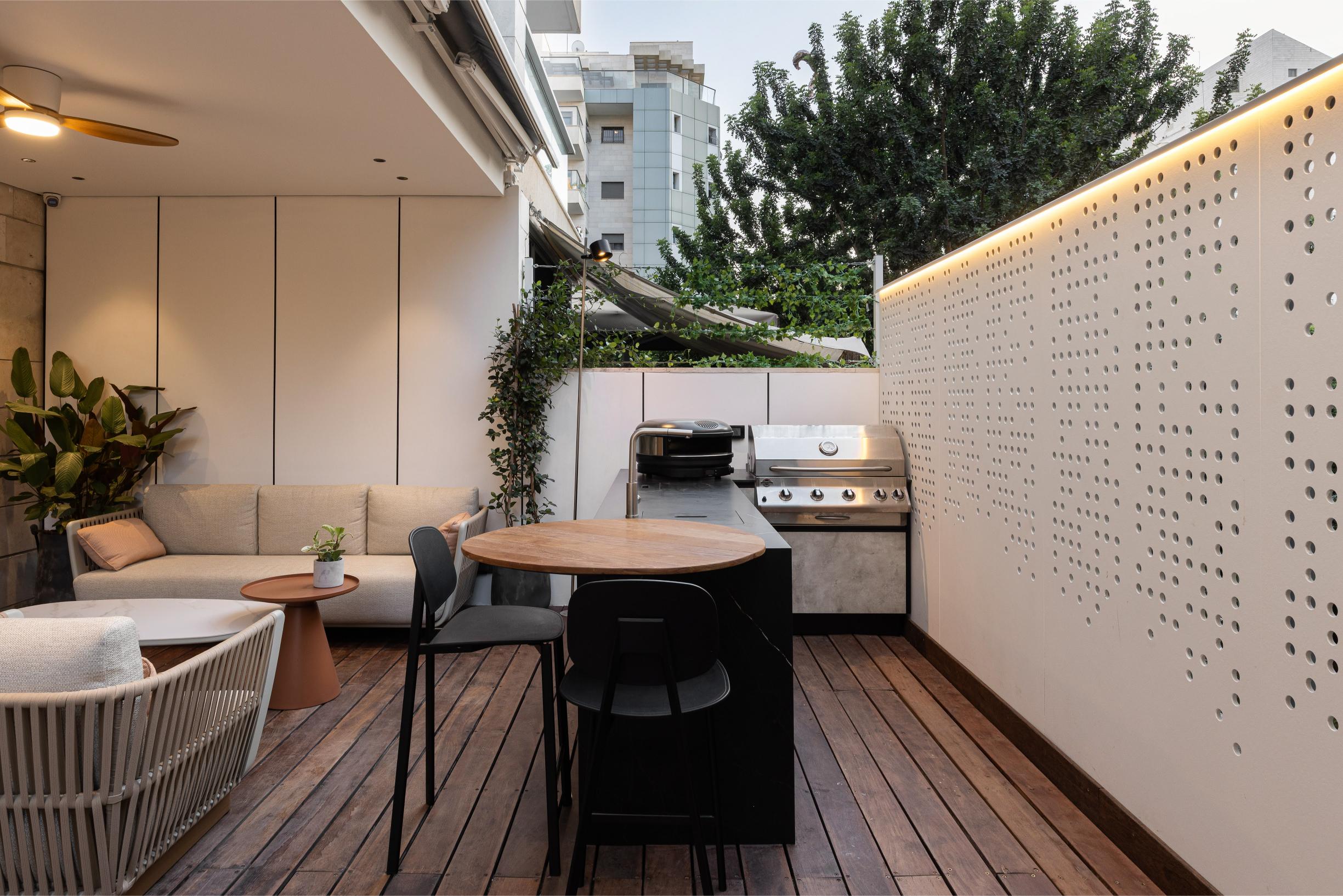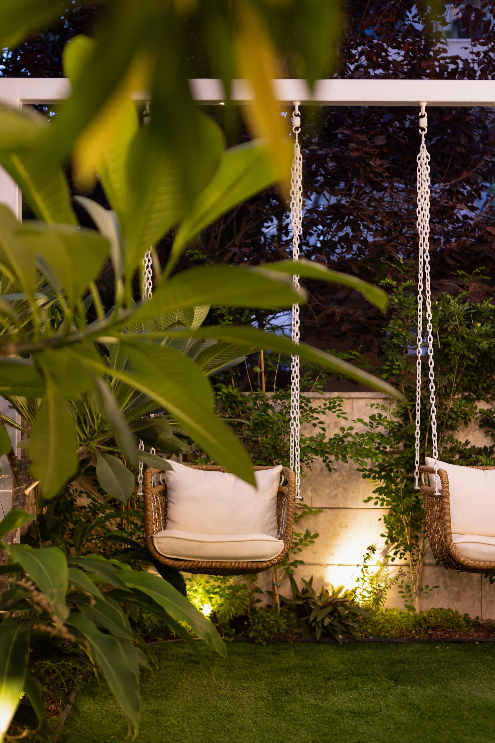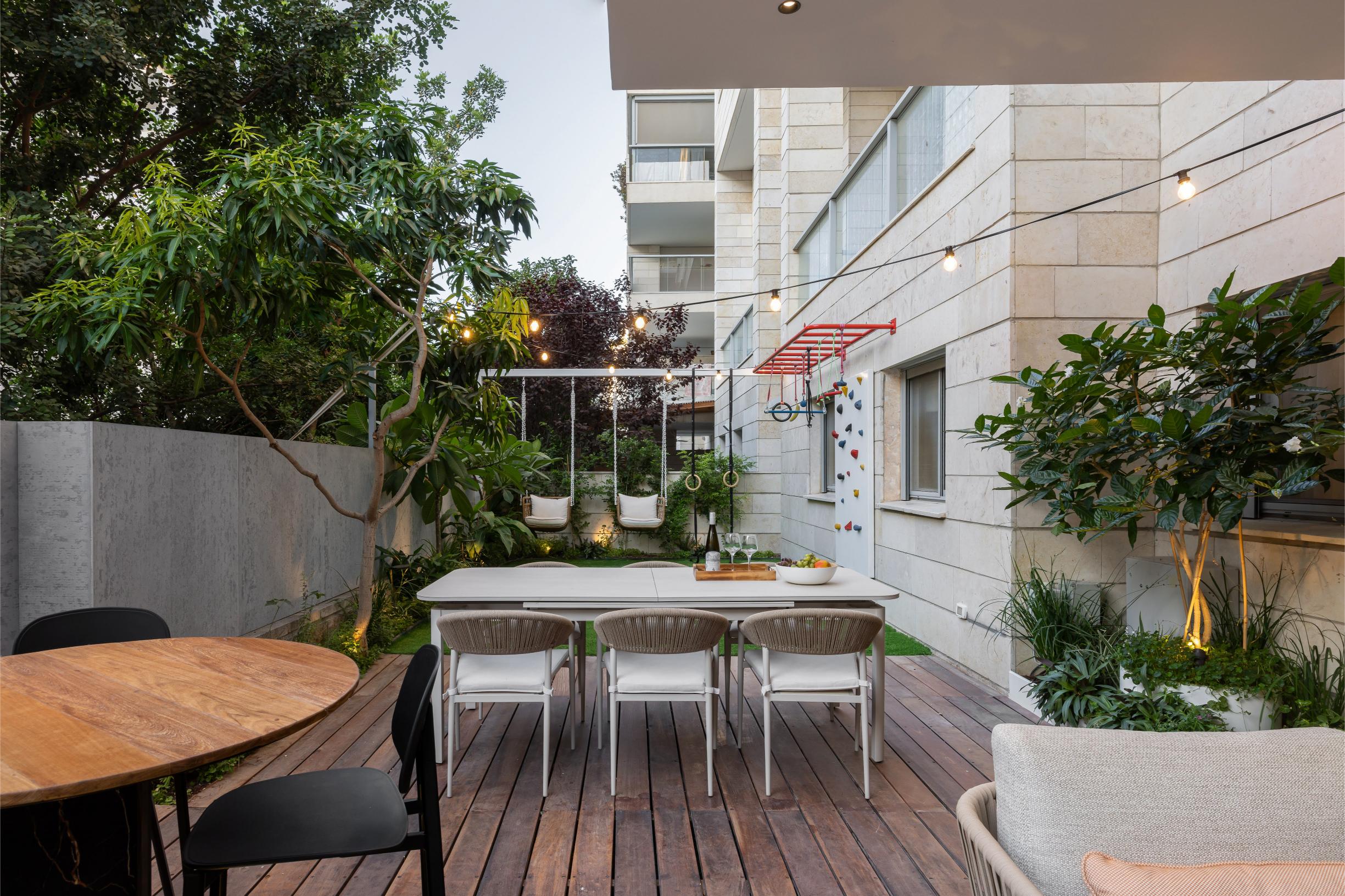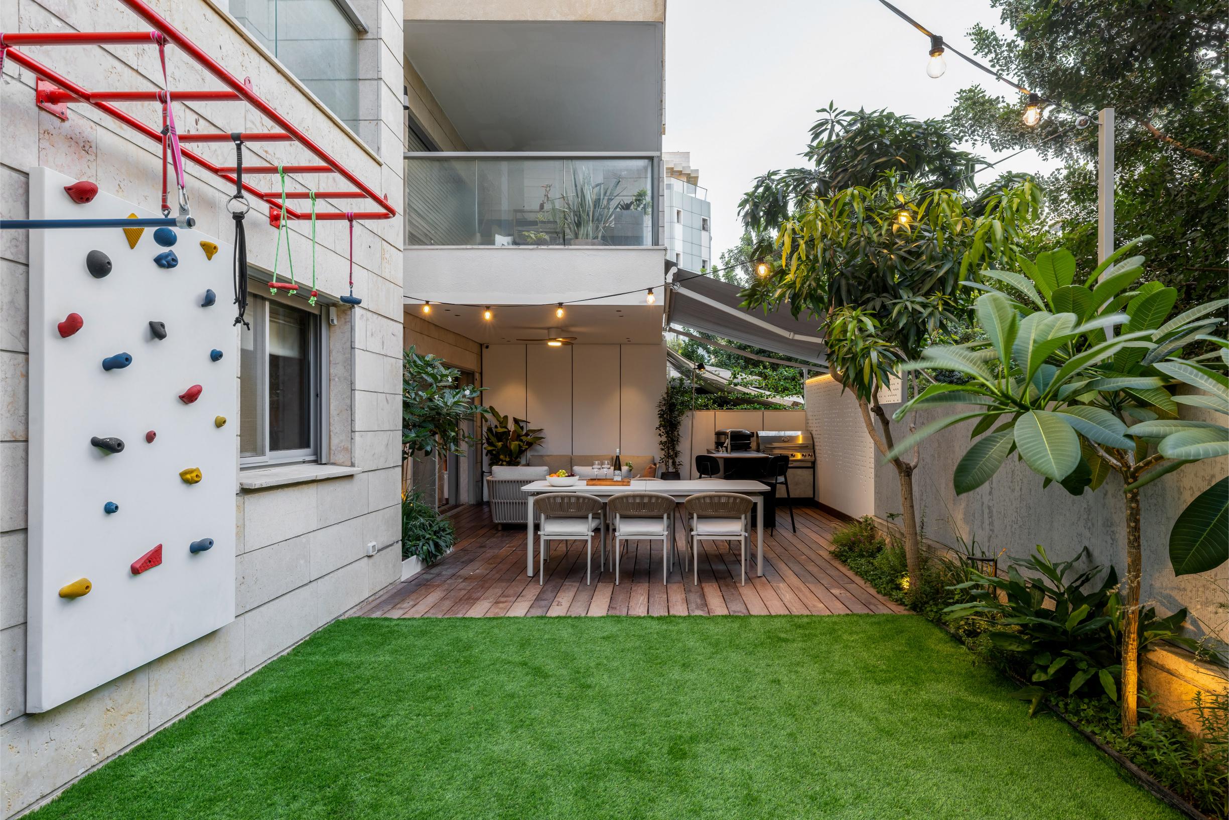 בלב שכונה ירוקה בעיר סואנת, יצרנו חצר שהיא הרבה יותר מחצר – היא יצירת אמנות של ממש. דירת גן ראשונה למשפחה צעירה עם ילדים מלאי אנרגיה, שאוהבים את קצב החיים העירוני אבל רצו לעצמם וגם לילדיהם מרחב של טבע, תנועה והנאה. עיצבנו מחדש את החיים שלהם בעיר: שילבנו פינות משחק בטוחות ומלאות אפשרויות לילדים, לצד אזורי ישיבה יוקרתיים לאירוח, מטבח חוץ מרשים בסטנדרט State Of The Art, וצמחייה עשירה שעוטפת הכל באווירה של ריזורט פרטי. כל פרט – מתאורה מדויקת ועד קירות הרקע המעוצבים – נבחר בקפידה והפך לאומנות של עיצוב חוץ. זו חצר שמחברת בין יוקרה למשפחתיות, בין פרטיות לבין הדופק העירוני – ומעניקה למשפחה מקום לנשום, לשחק ולחגוג את החיים. תכנון וביצוע: TERASSA עיצוב חוץ. מתכנן אחראי במשרד: נועם בית יוסף. מנהל פרויקט בשטח: תאופיק אטרש מעצבת פנים: קלריסה סיידון. צילום: מירב פלברג
