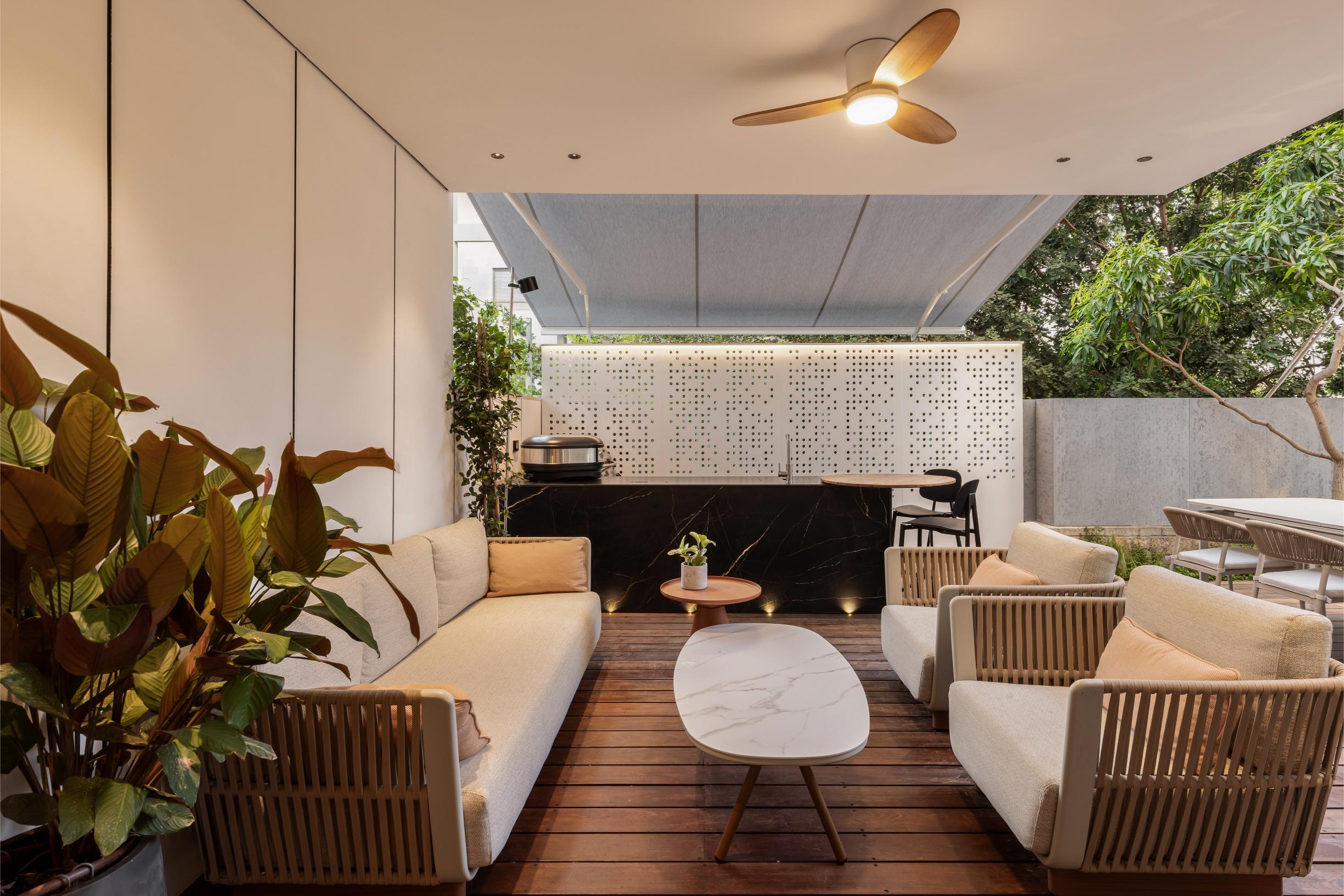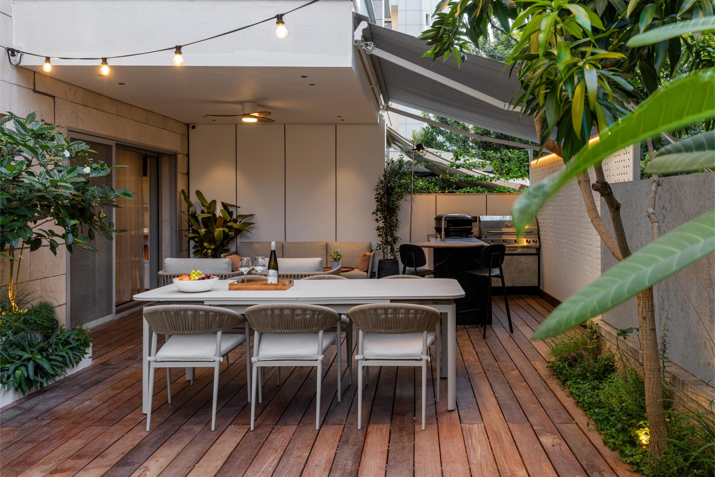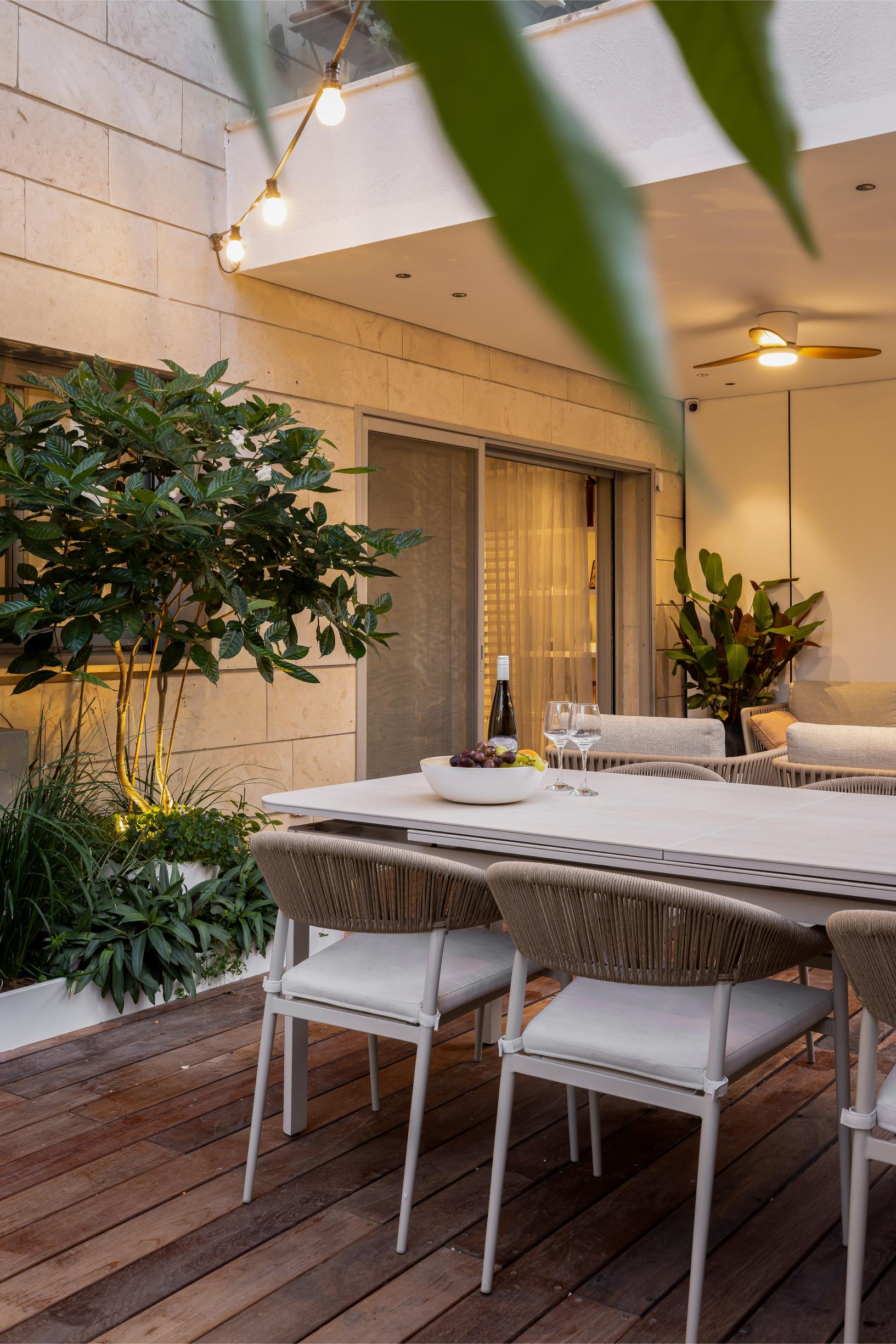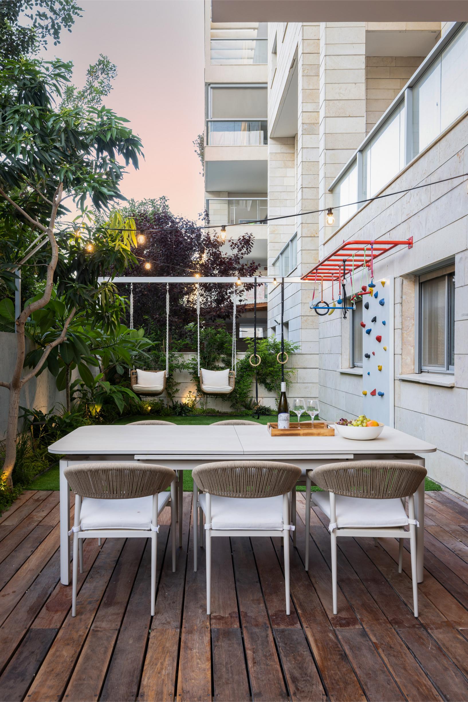 בלב שכונה ירוקה בעיר סואנת, יצרנו חצר שהיא הרבה יותר מחצר – היא יצירת אמנות של ממש. דירת גן ראשונה למשפחה צעירה עם ילדים מלאי אנרגיה, שאוהבים את קצב החיים העירוני אבל רצו לעצמם וגם לילדיהם מרחב של טבע, תנועה והנאה. עיצבנו מחדש את החיים שלהם בעיר: שילבנו פינות משחק בטוחות ומלאות אפשרויות לילדים, לצד אזורי ישיבה יוקרתיים לאירוח, מטבח חוץ מרשים בסטנדרט State Of The Art, וצמחייה עשירה שעוטפת הכל באווירה של ריזורט פרטי. כל פרט – מתאורה מדויקת ועד קירות הרקע המעוצבים – נבחר בקפידה והפך לאומנות של עיצוב חוץ. זו חצר שמחברת בין יוקרה למשפחתיות, בין פרטיות לבין הדופק העירוני – ומעניקה למשפחה מקום לנשום, לשחק ולחגוג את החיים. תכנון וביצוע: TERASSA עיצוב חוץ. מתכנן אחראי במשרד: נועם בית יוסף. מנהל פרויקט בשטח: תאופיק אטרש מעצבת פנים: קלריסה סיידון. צילום: מירב פלברג